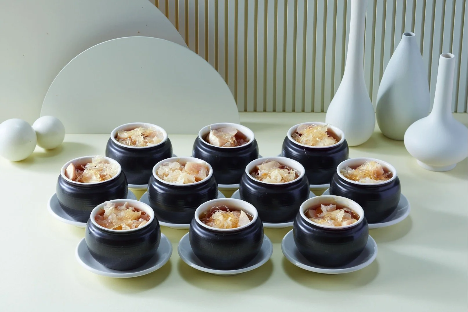 包含多種蔬菜慢火細燉的高湯湯頭,搭配猴頭菇、白木耳、牛肝箘以及素翅,溫和滑順入喉後還有淡淡蘋果甜味回甘。