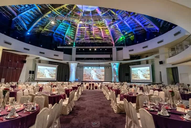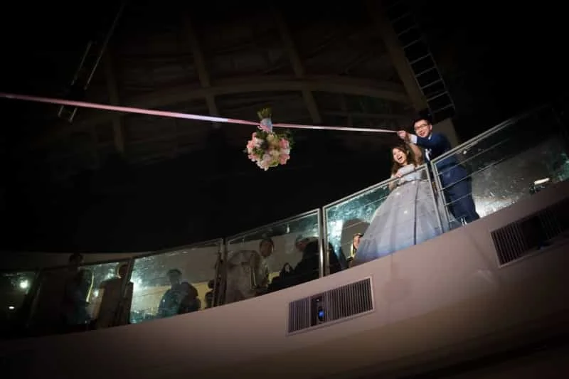 婚禮場地簡介:挑高12米完全無樑柱的圓頂劇場,有豪鼎小巨蛋之稱,前方兩款投影光柱搭配10米寬舞台,表演慾強烈的新人絕對不可以錯過。